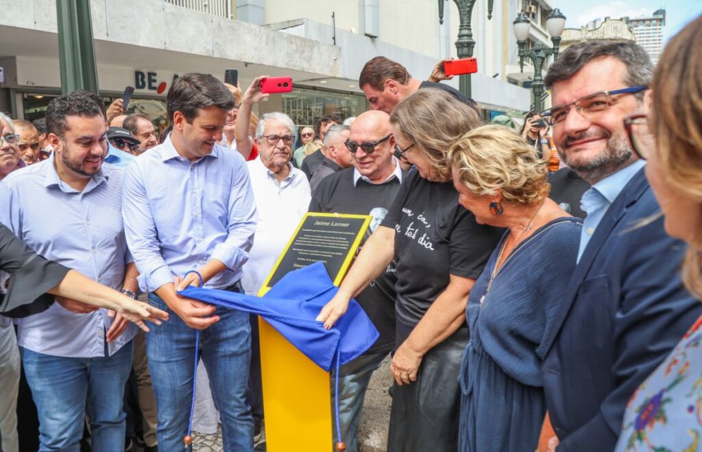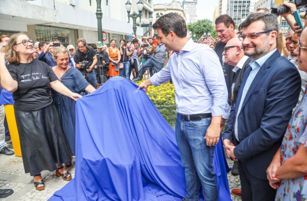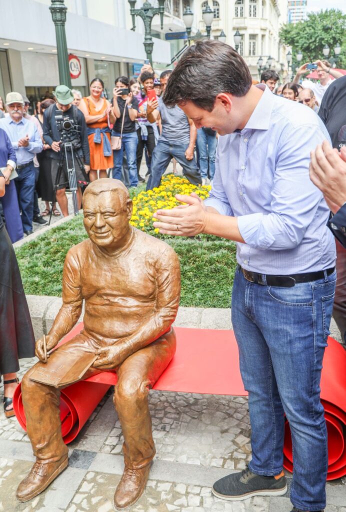 O Movimento Pró-Paraná prestigiou, nesta segunda-feira (23/03), a solenidade de inauguração da escultura em homenagem ao arquiteto e urbanista Jaime Lerner, instalada no calçadão da Rua XV de Novembro, no Centro de Curitiba. A entrega integra a programação oficial pelos 333 anos da capital paranaense, celebrados no dia 29 de março.